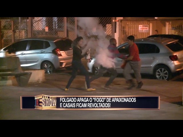 Um tremendo cara de pau resolve se meter no namoro alheio e aciona um extintor quando detecta o clima...