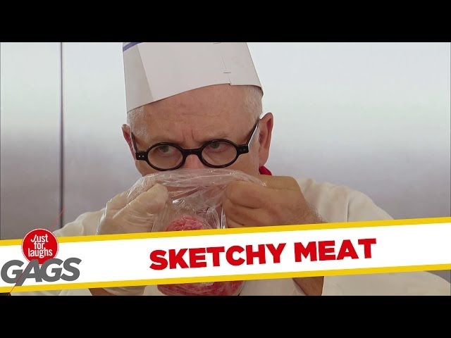 http://gags.justforlaughs.com | Subscribe! http://goo.gl/67gcH Customers come in to buy meat from a butcher, but the butcher is disgusted because...