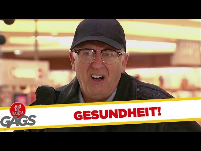 http://gags.justforlaughs.com | Subscribe! http://goo.gl/67gcH Let’s hope she’s not contagious! This old lady sneezes SO hard it splashes all over...