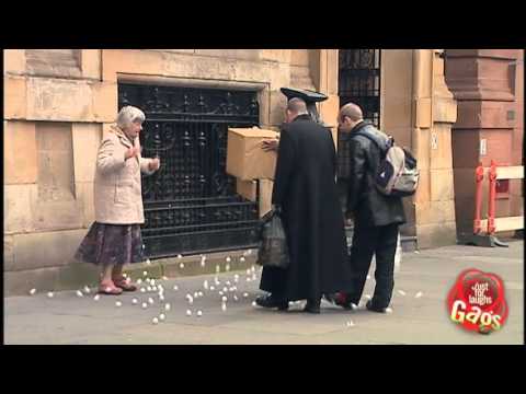http://gags.justforlaughs.com | Subscribe! http://goo.gl/wJxjG An old woman is carrying a box full of ping pong balls. As she hands...
