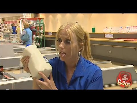 http://gags.justforlaughs.com | Subscribe! http://goo.gl/wJxjG A grocery store cashier uses her tongue ring to scan customer’s groceries. It’s crazy but...