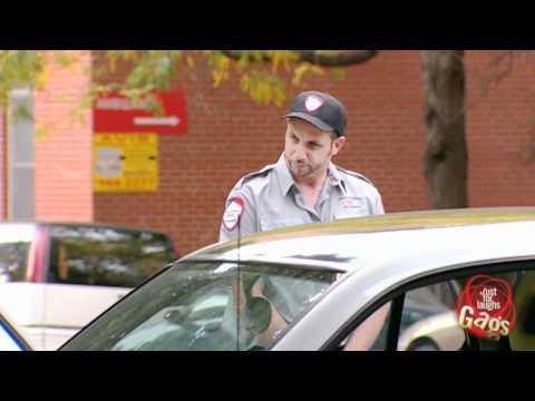 http://www.hahaha.com Old woman asks a pedestrian to help park her car but the car doesn’t work and backs away...