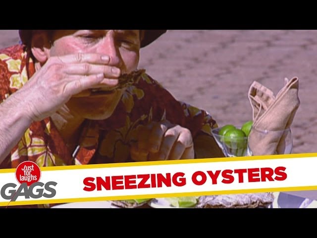 http://gags.justforlaughs.com | Subscribe! http://goo.gl/wJxjG A crazy tourist sneezes an oyster, shows it to people and then eats it. Buy...